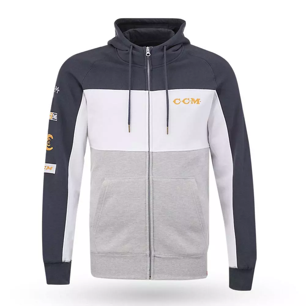 The classic full zip hoodie never goes out of style. Built for comfort, this fleece staple features ribbed cuffs and waistband, plus a jersey-lined hood with drawcord (SR only). The contrast zipper color and woven logo label on the sleeve add a pop of color that gets you noticed.Â