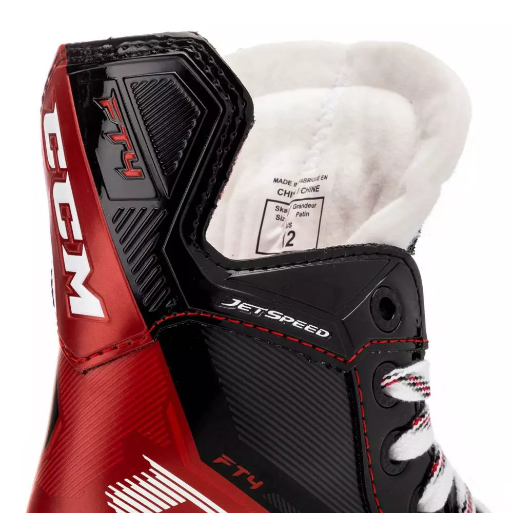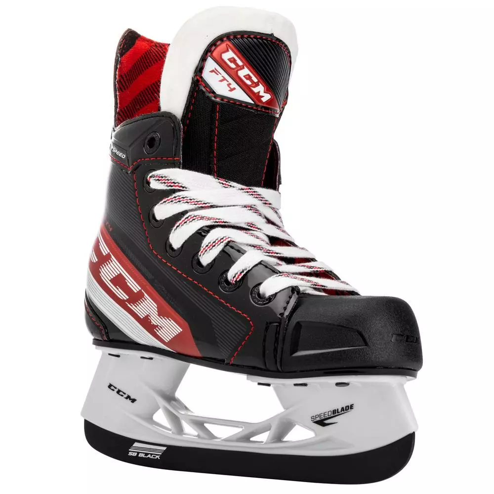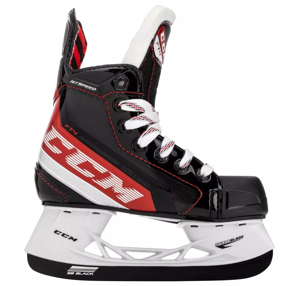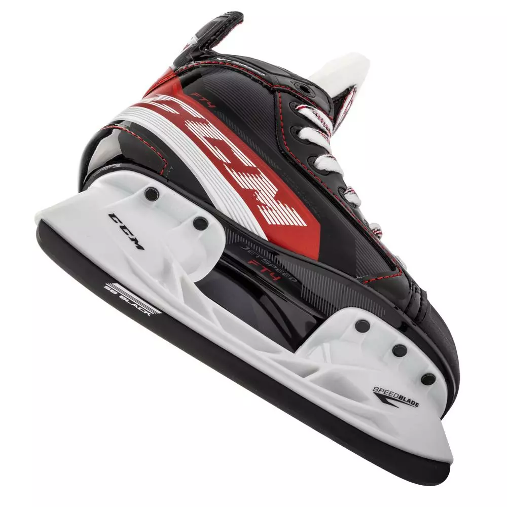 The 2021 CCM Jetspeed FT4 youth skate is reinforced with synthetic composite to give you a more durable boot and structural stiffness. The solid core of this skate helps to generate good skating performance and more power in every stride.Â