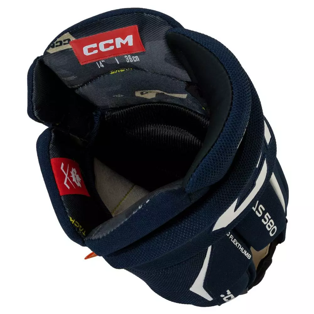 CCM also places a focus on the palm in the Tacks AS 580 glove. At the place where the most wear-and-tear occurs in a hockey glove, CCM uses the high-quality nash material with nash reinforcements. The nash palm not only adds durability to the glove, but also offers great stick feel. For comfort, this glove features a laminated liner with PU cushion foam.Â